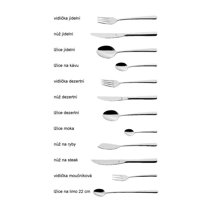 Chrómniklová oceľ 18/10 hrúbka materiálu 4mm, nôž 8mm. Vysoko leštená.