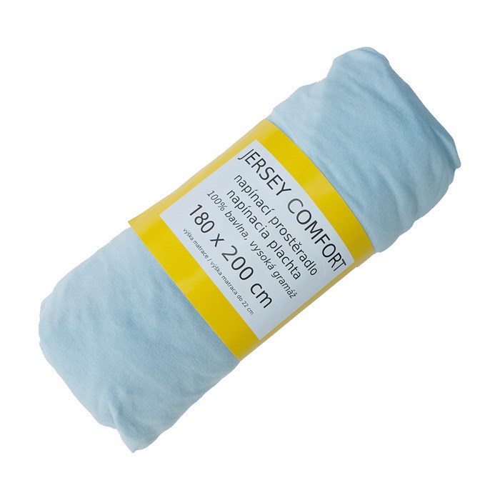 prostěradlo Jersey Comfort 180x200x22 modré, s gumou, 180g/m2, 100%BA