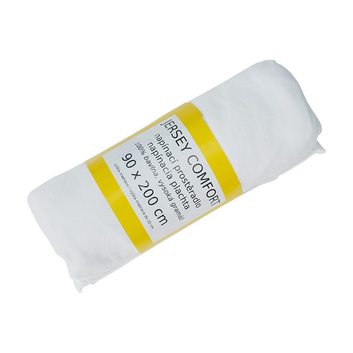 prostěradlo Jersey Comfort 90x200x22 bílé, s gumou, 180g/m2, 100%BA
