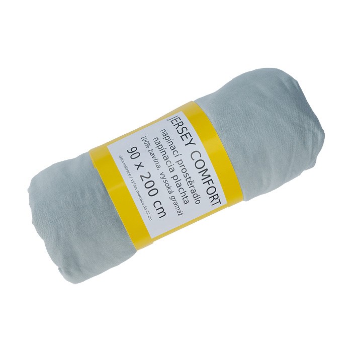 prostěradlo Jersey Comfort 90x200x22 šedé, s gumou, 180g/m2, 100%BA