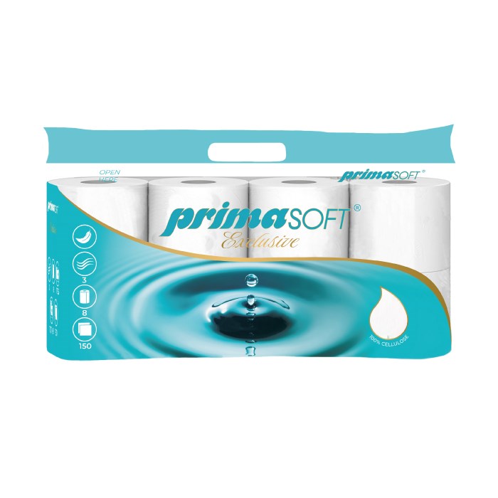 toal.pap.3vr. 150út/8 ks bílý primaSOFT Exclusive, šíře 9cm, návin 17,55m